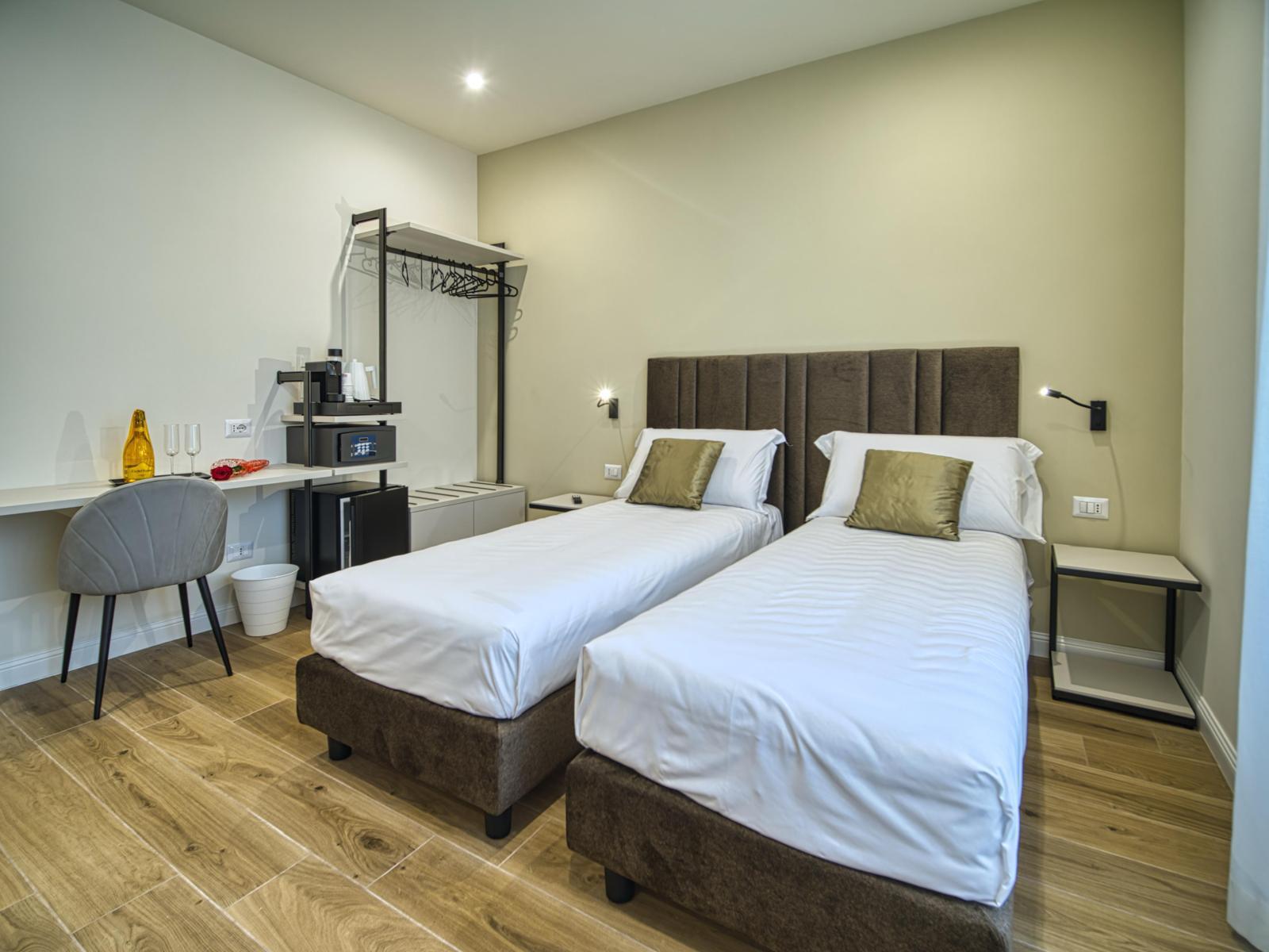 La camera Piazza Venezia è un’accogliente soluzione pensata per adattarsi alle diverse esigenze degli ospiti: dispone di un comodo letto matrimoniale con la possibilità di separarlo in due letti singoli, ideale sia per coppie che per amici o familiari. Su richiesta, è disponibile anche una culla per i più piccoli. L’ambiente è curato nei dettagli, confortevole e perfetto per un soggiorno rilassante.